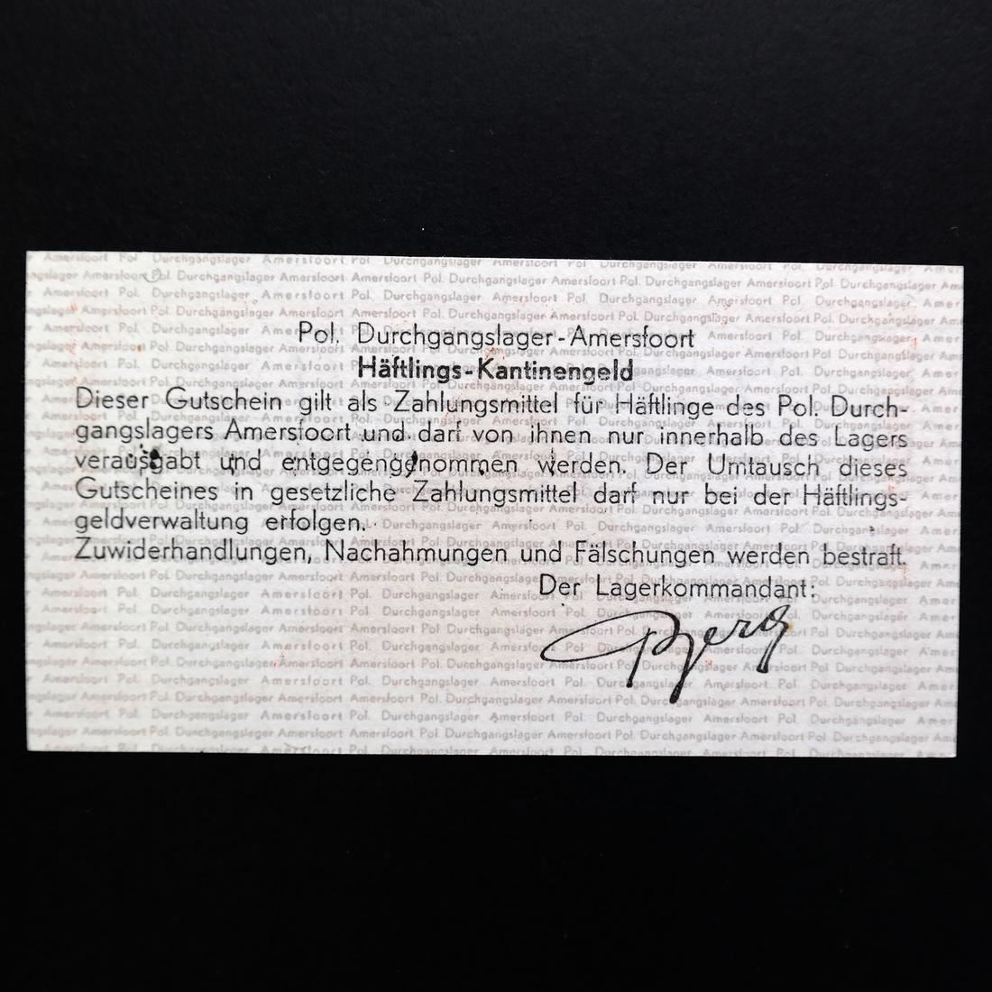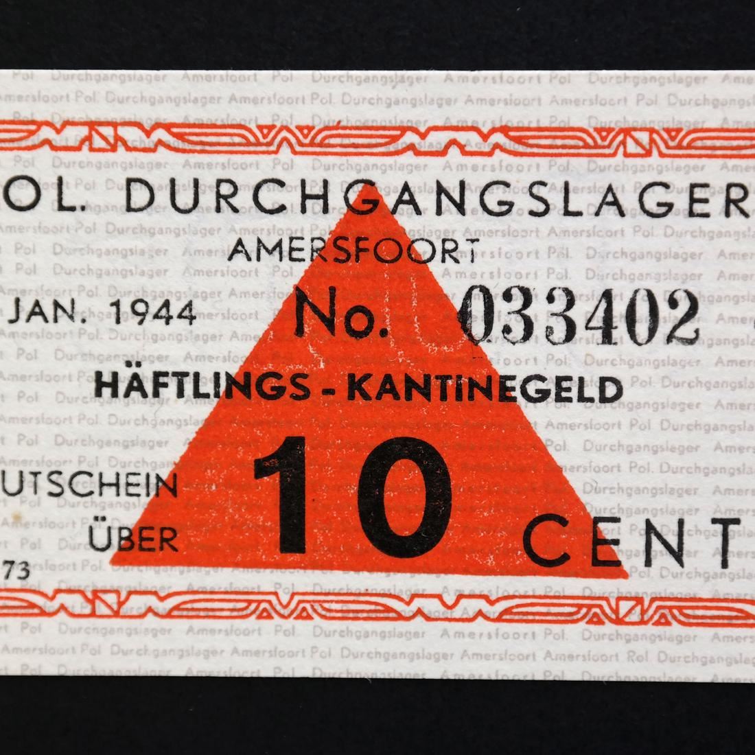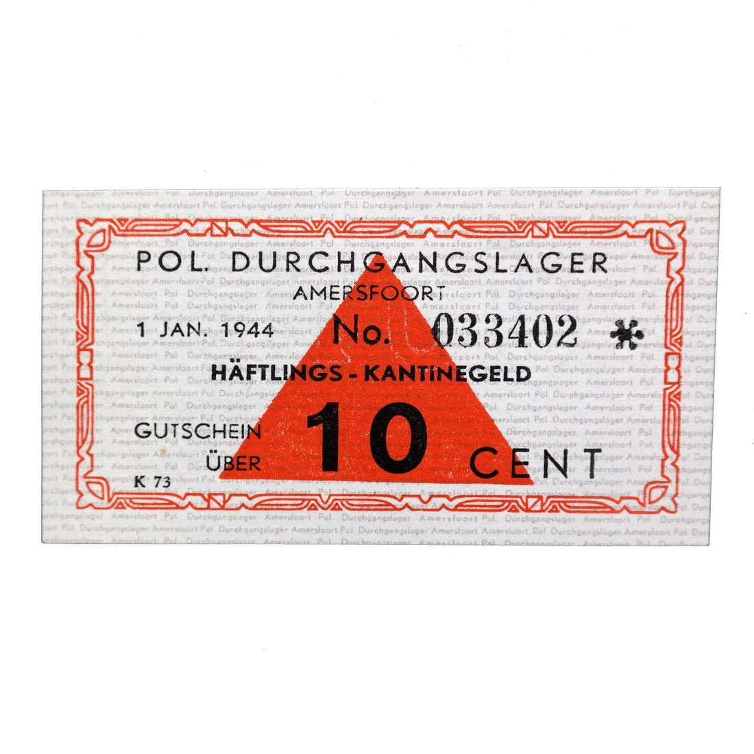 Pol. Durchgangslager / Amersfoort / 1. Jan. 1944 / Hftlings-Kantinegeld / Gutschen ber 10c note with grey underprinting, star after the serial number and JUTE watermark, Uncirculated.
