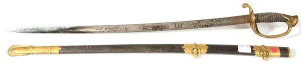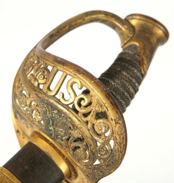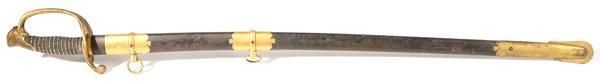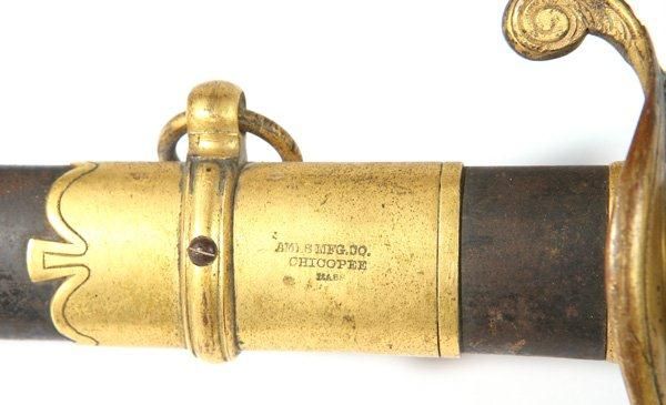 AMES M1850 FIELD & STAFF OFFICERS SWORD, belonging to Harry Appel of Clermont Co., Ohio. This fine example of an Ames sword is marked on the blue steel scabbard ~Ames Mfg.Co. Chicopee, Mass~. The sword is 38in long with cast brass hilt with single pi