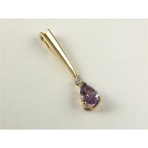PENDANT: Charming 10k yellow gold pendant set with a pear shape amethyst and accented with a round cut diamond. The lavender amethyst measures approximately 0.65 cts and is transparent. The diamond measures approximately 0.01 cts, has VS1 clarity and H color. Appraisal included.