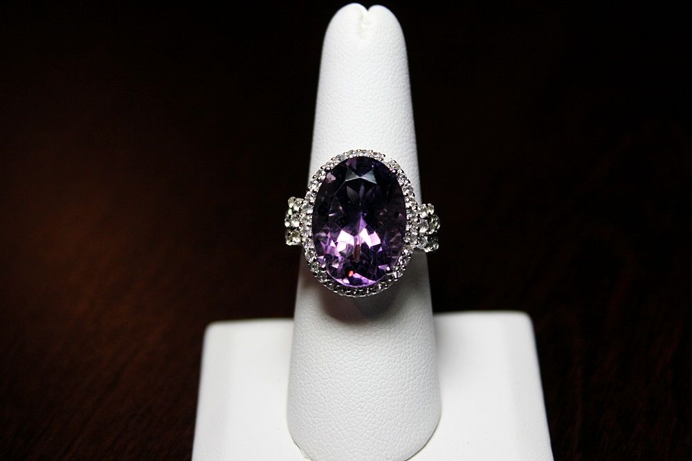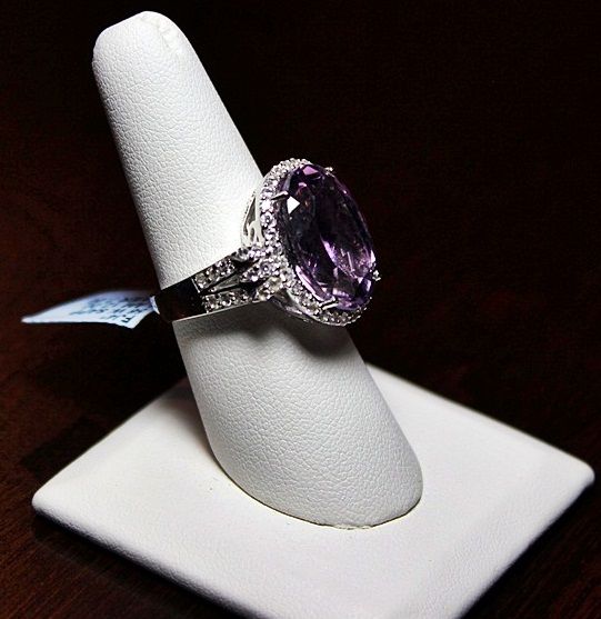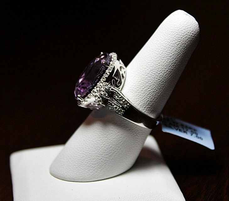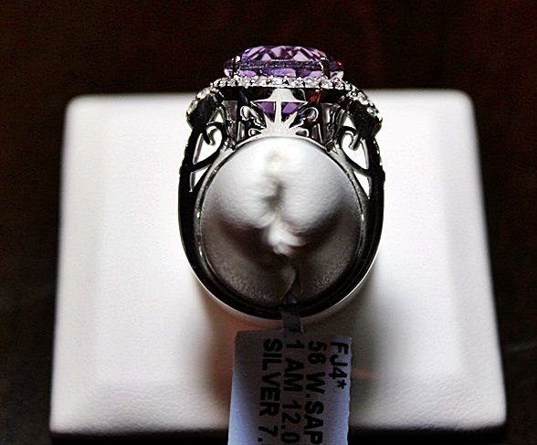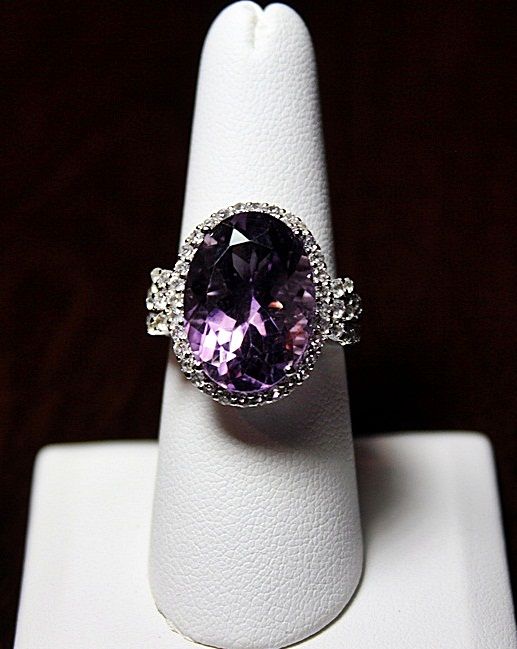 SILVER RING WITH 1 AMETHYST 56 WHITE SAPPHIRES. AMETHYST: 12.00CTW SILVER: 7.00G. RETAIL PRICE $1200.00.