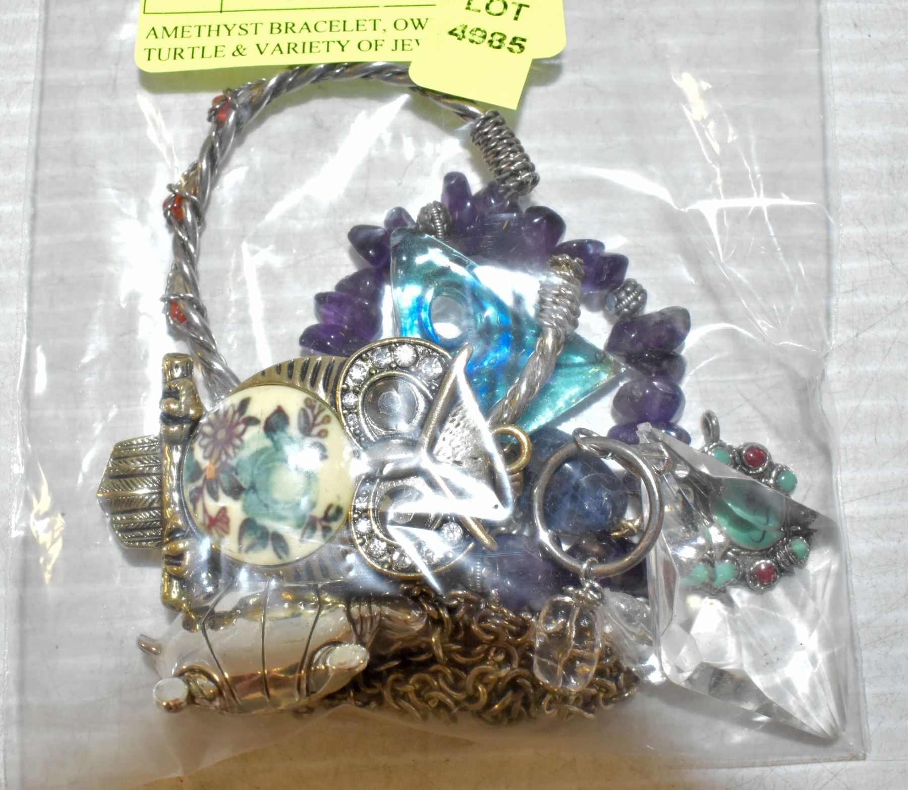 AMETHYST BRACELET, OWL, TURTLE & VARIETY JEWELRY
