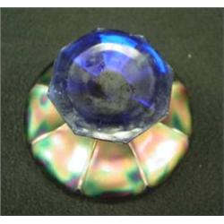 Amethyst carnival glass compote with hexagon base. Color is excellent. Size is 2-1/4" x 4-3/8". Condition: Excellent