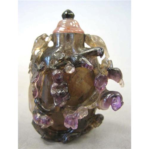 AMETHYST CARVED SNUFF BOTTLE height: 4"