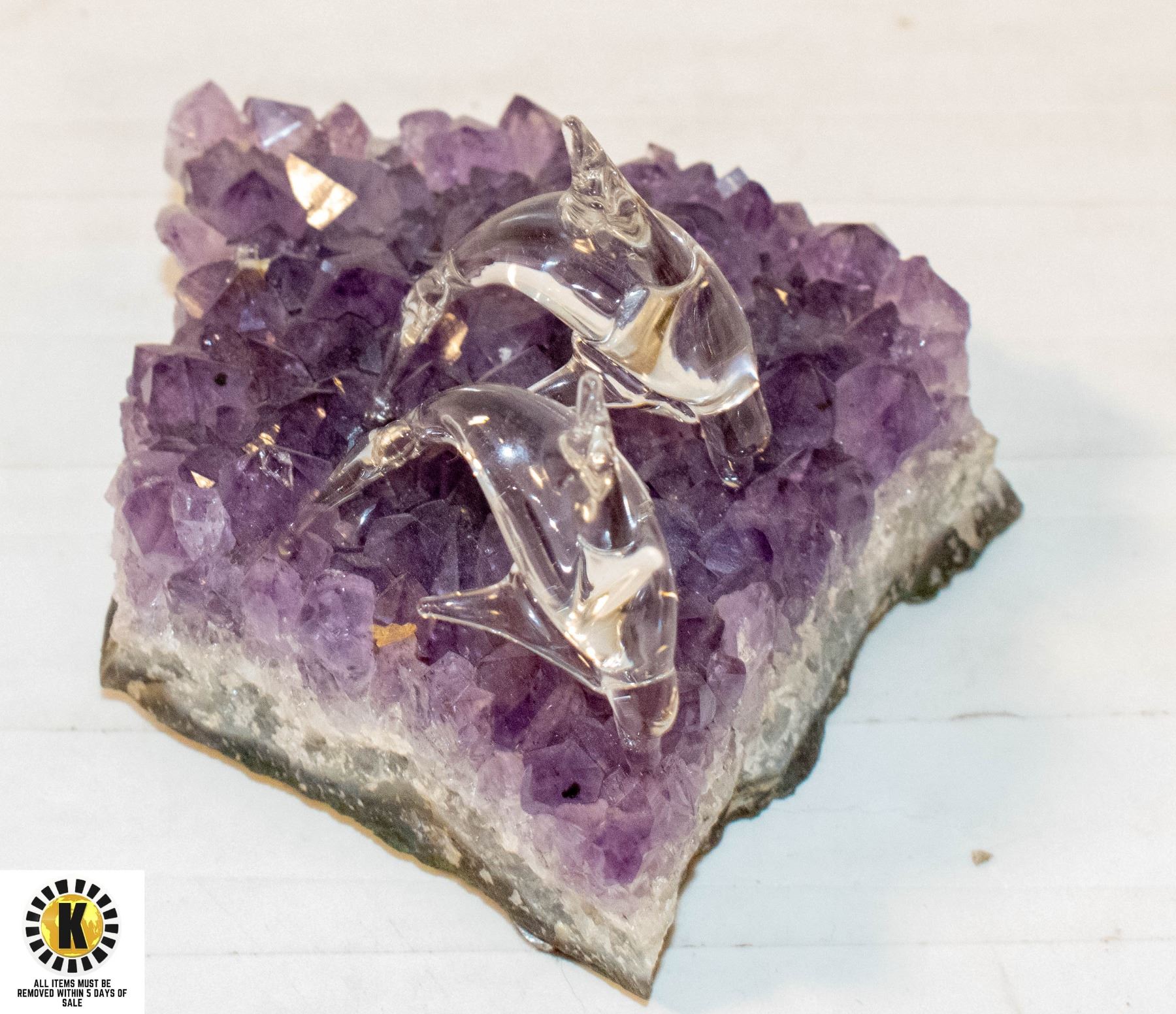 AMETHYST CHUNK WITH GLASS DOLPHINS