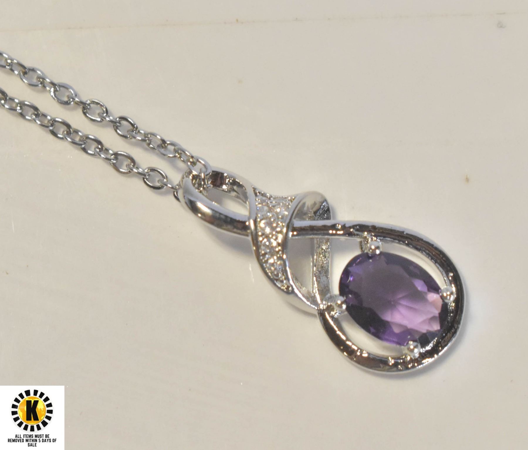 AMETHYST COLORED PENDANT WITH CLEAR STONE ACCENTS