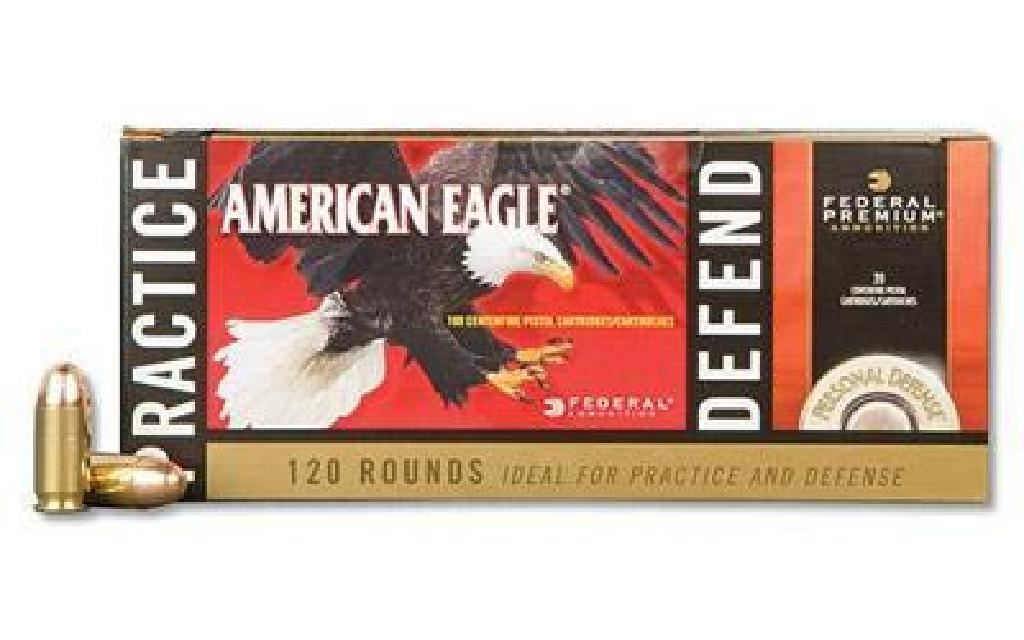 Federal, American Eagle, 9MM, 124 Grain, Full Metal Jacket & Jacketed Hollow Point Combo Pack: 100 Full Metal Jacket & 20 Jacketed Hollow Point Product Specifications UPC Code: 029465063634 Manufacturer: Federal Model: American Eagle Model: Hydra-Shok Caliber: 9MM Grain Weight: 124Gr Type: FMJ & JHP Description: Combo Pack: 100 FMJ & 20 JHP Units per Box: 120 Units per Case: 480 Manufacturer Part #: PAE9124
