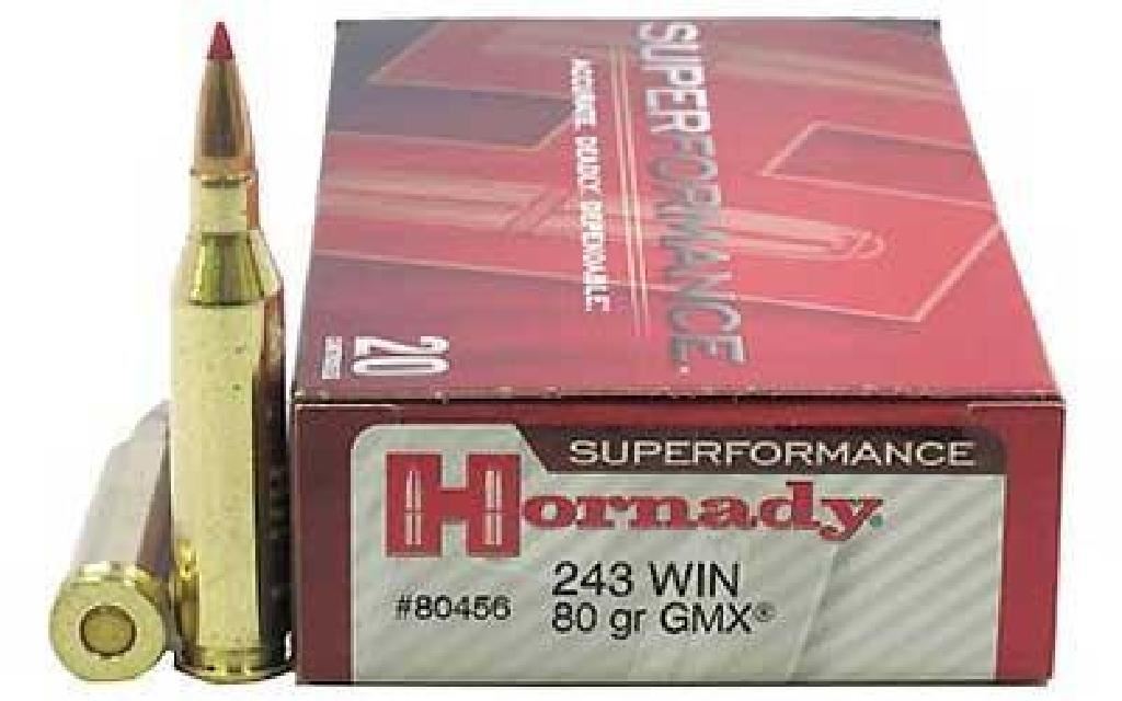 PC Code: 090255804560 Manufacturer: Hornady Model: Superformance Caliber: 243 Win Grain Weight: 80Gr Type: GMX Units per Box: 20 Units per Case: 200 Manufacturer Part #: 80456