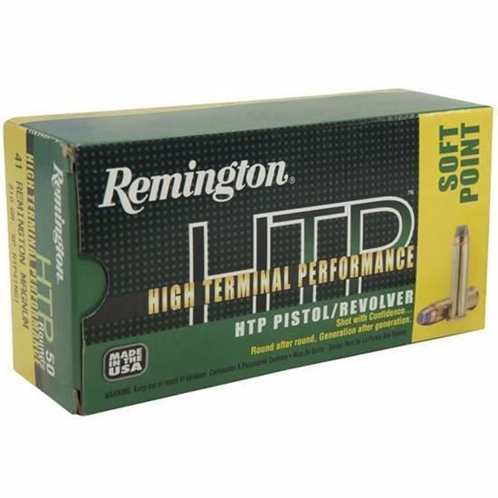 (200 ROUNDS) Mfr Items:Remington Ammunition Category:CENTERFIRE HANDGUN ROUNDS Model:High Terminal Performance Series:Hollow Point Caliber:41 Remington Magnum Bullet Type:Soft Point Bullet Weight:210 GR Muzzle Energy:788 ft lbs Muzzle Velocity:1300 fps Rounds Per Box:50 Application:Performance/Protection