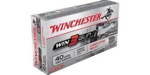 Product Specifications UPC Code: 020892220614 Manufacturer: Winchester Model: 3Gun Caliber: 40 S&W Grain Weight: 180Gr Type: Full Metal Jacket Units per Box: 50 Units per Case: 500 Manufacturer Part #: X40TG