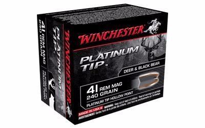 UPC Code: 020892213784 Manufacturer: Winchester Model: Platinum Tip Caliber: 41 Mag Grain Weight: 240Gr Type: Hollow Point Units per Box: 20 Units per Case: 200 Manufacturer Part #: S41PTHP