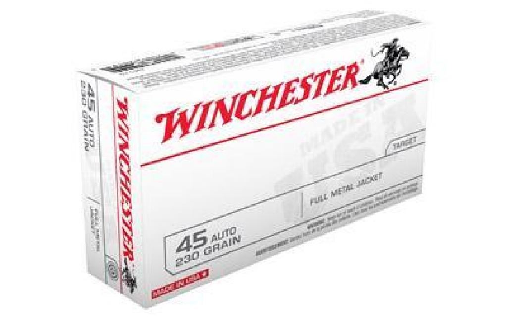 UPC Code: 020892201910 Manufacturer: Winchester Model: USA Caliber: 45 ACP Grain Weight: 230Gr Type: Full Metal Jacket Units per Box: 50 Manufacturer Part #: Q4170
