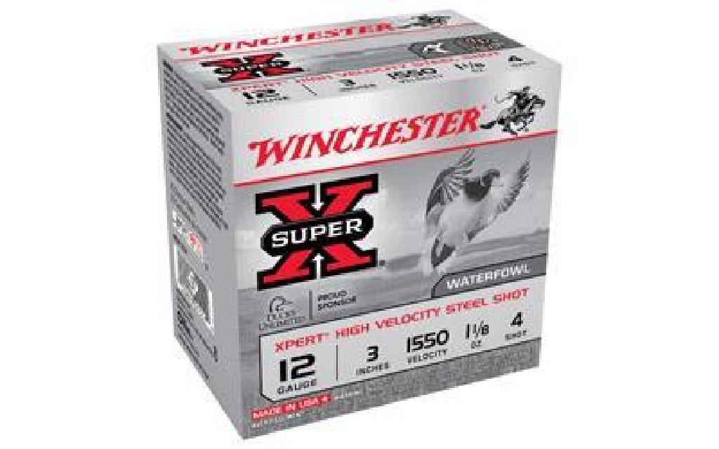 UPC Code: 020892015579 Manufacturer: Winchester Model: Xpert HI-Velocity Steel Caliber: 12Ga 3" Grain Weight: #4 Ounce of Shot: 1 1/8 oz Type: Shotshell Units per Box: 25 Units per Case: 250 Manufacturer Part #: WEX1234