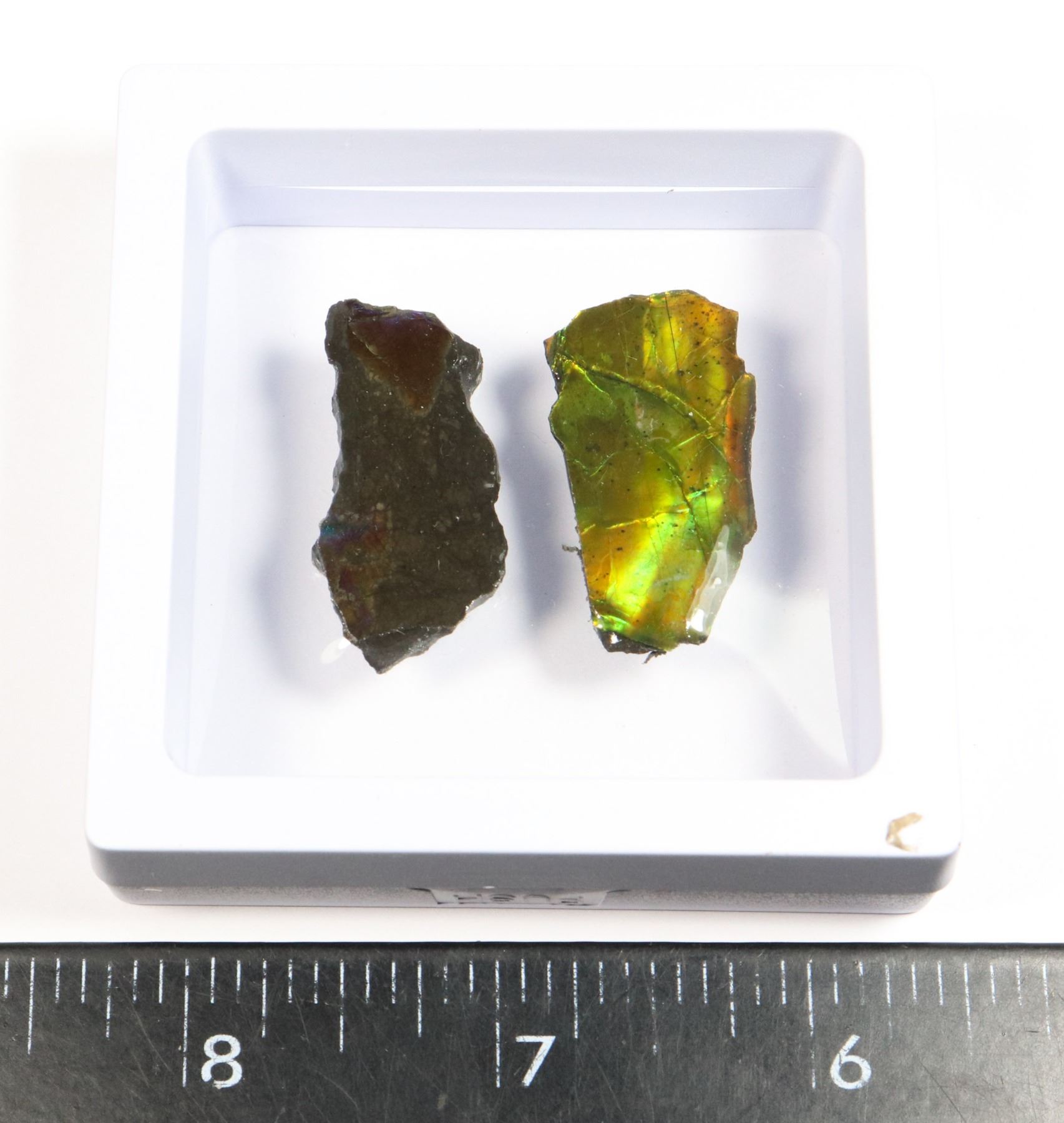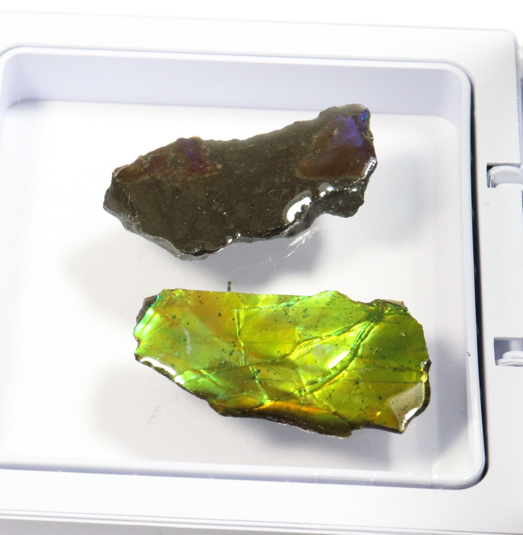 AMMOLITE GEMSTONE IN FLOATING DISPLAY CASE