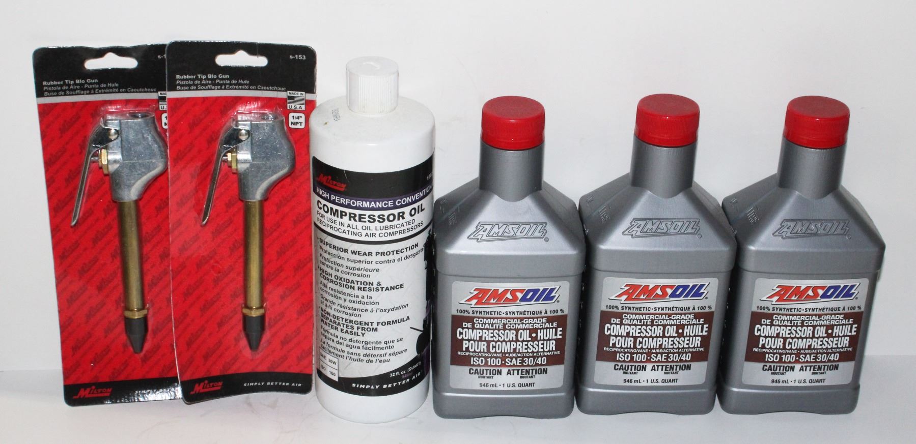 AMSOIL COMPRESSOR OIL, RUBBER TIP BLO GUNS, AND