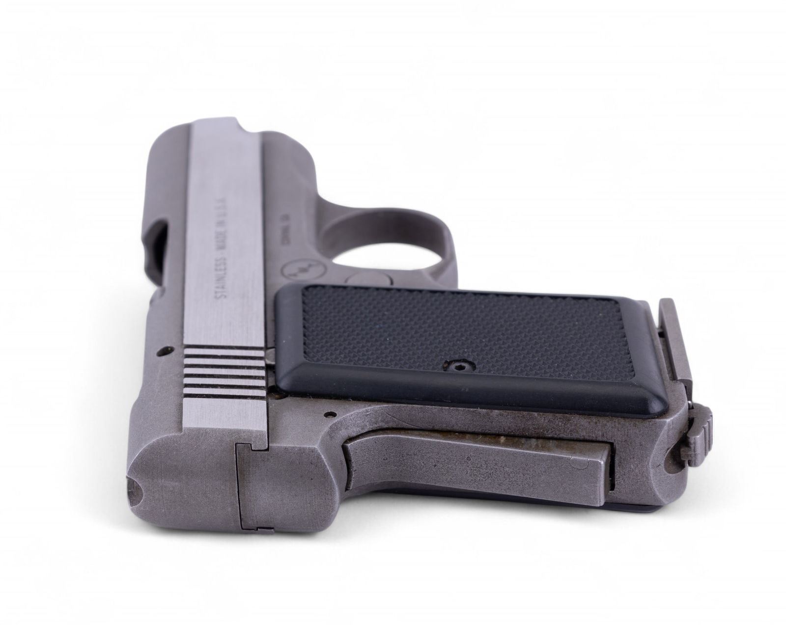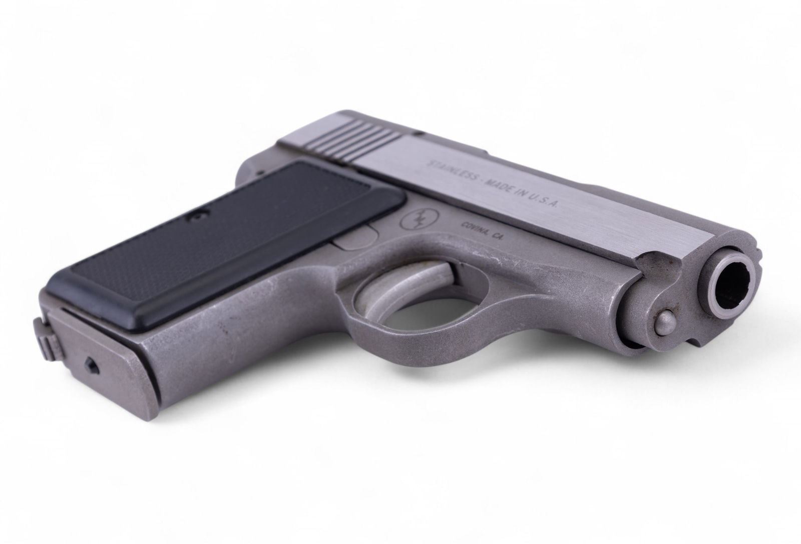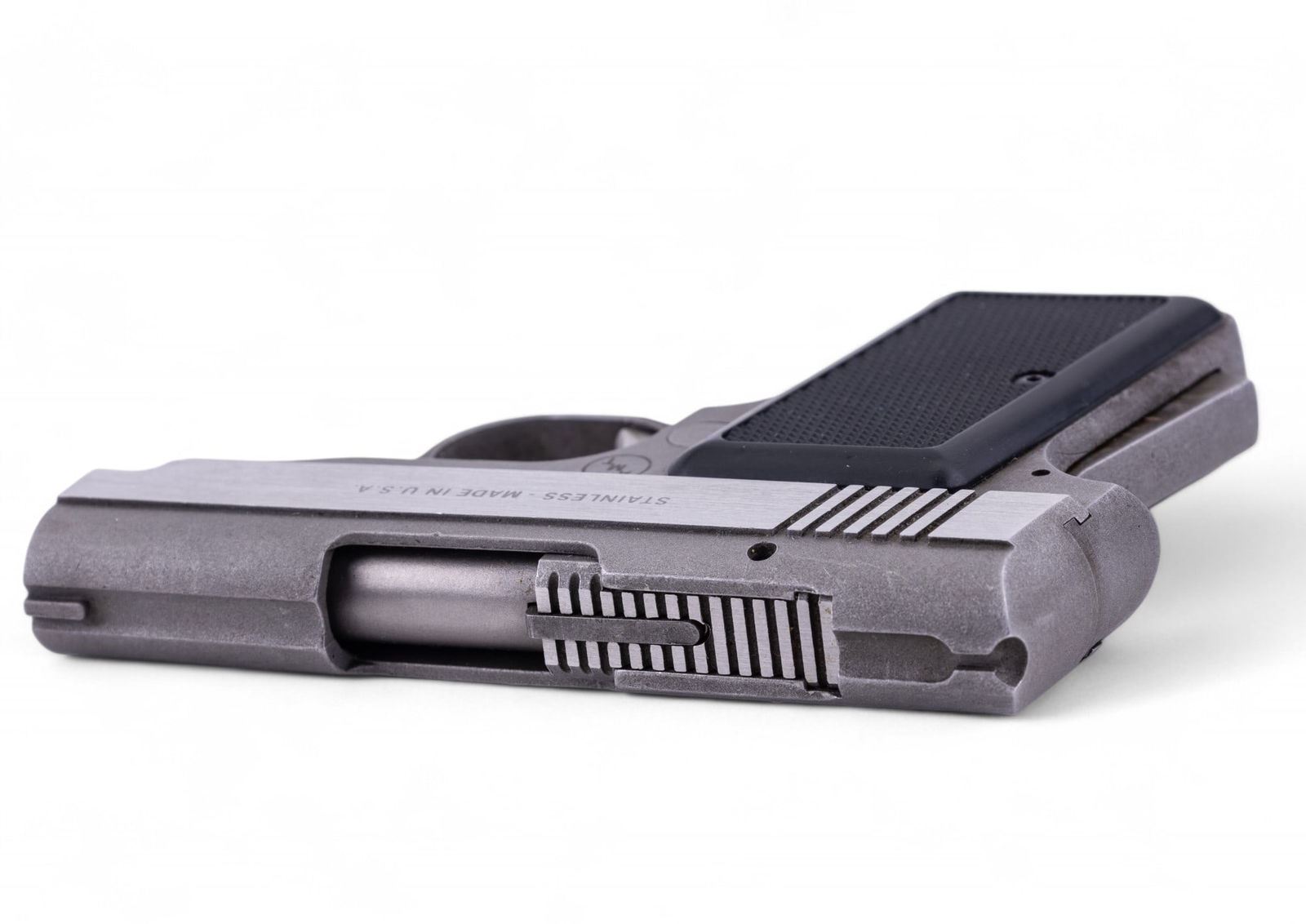 Stainless steel made in U.S.A. Grip safety lever. Minor wear overall good condition. Comes with three magazines.