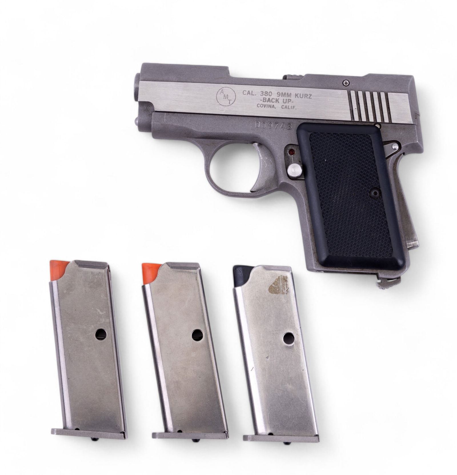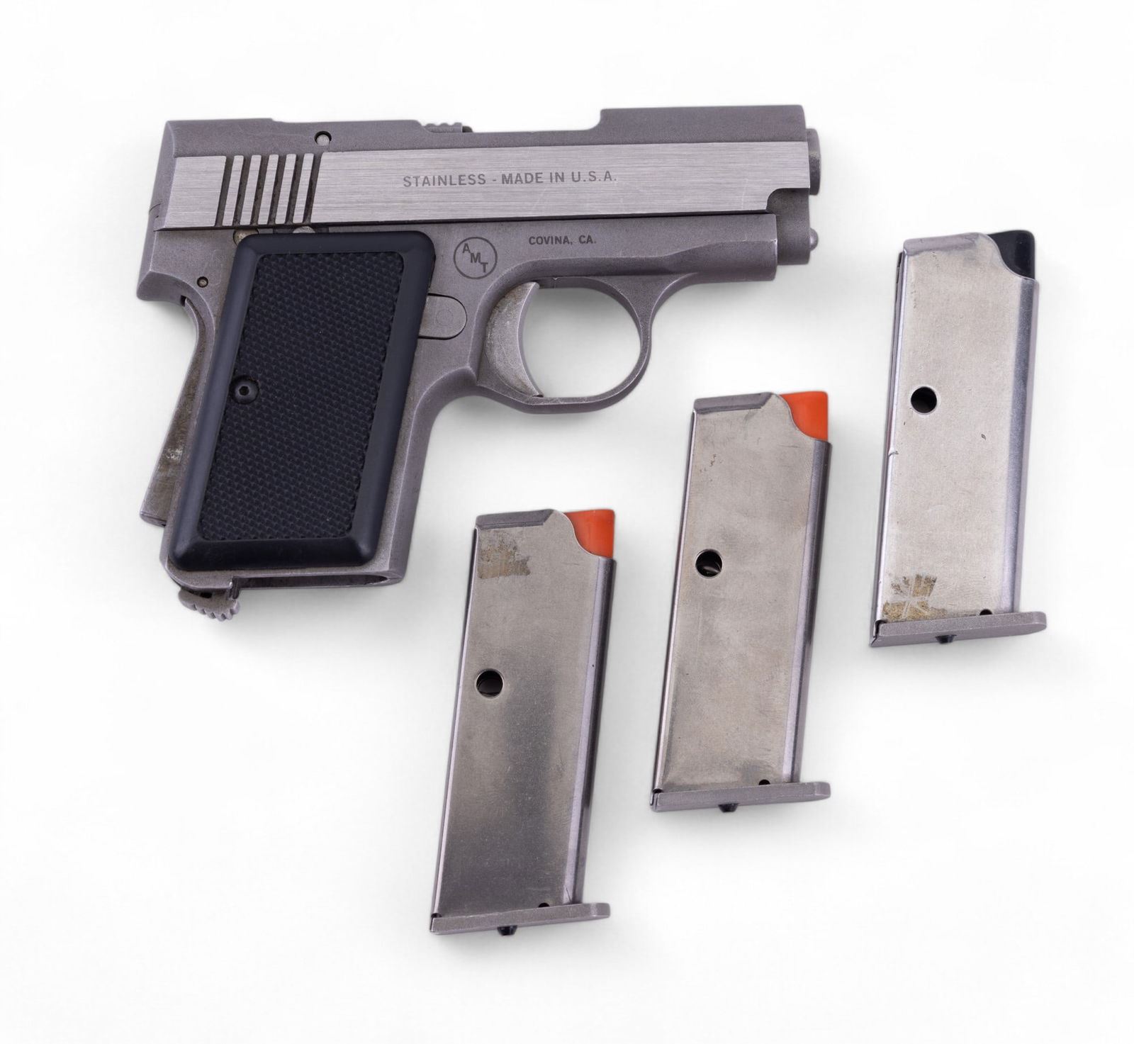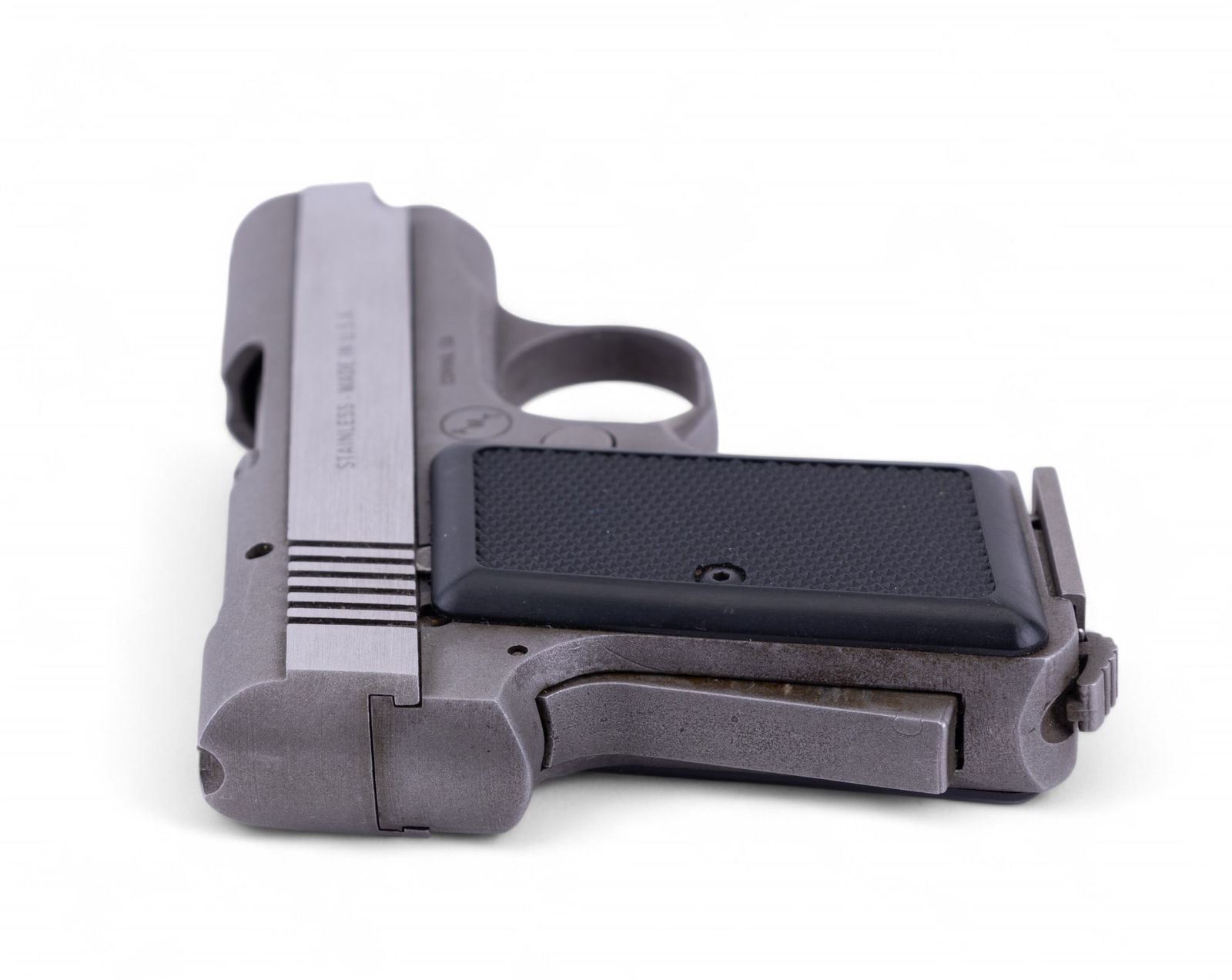 Stainless steel made in U.S.A. Grip safety lever. Minor wear overall good condition. Comes with three magazines.