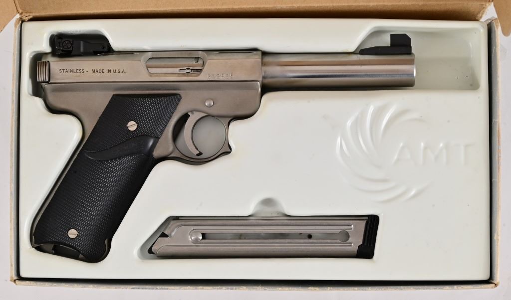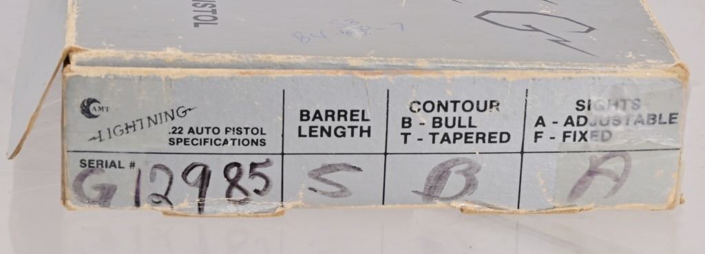 S/N G12985. Stainless steel finish, 6.5" Barrel. Good condition in original box. Modern.