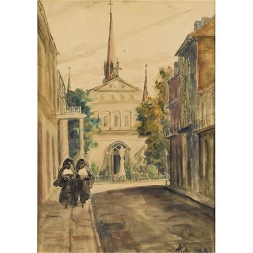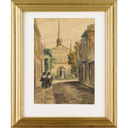 <B>AMY JACKSON (1903-1970)</B></I><BR>Untitled<BR>Watercolor on paper<BR>16 x 11-1/2 inches (40.6 x 29.2 cm)<BR>Signed lower left and lower right<BR><BR> <B>Condition Report:</B> Excellent condition. Period frame in excellent condition.<BR><BR><b>Shipping:</b> Requires 3rd Party Shipping (<a target="_blank" href="http://www.heritageauctions.com/common/shipping.php">view shipping information</a>)