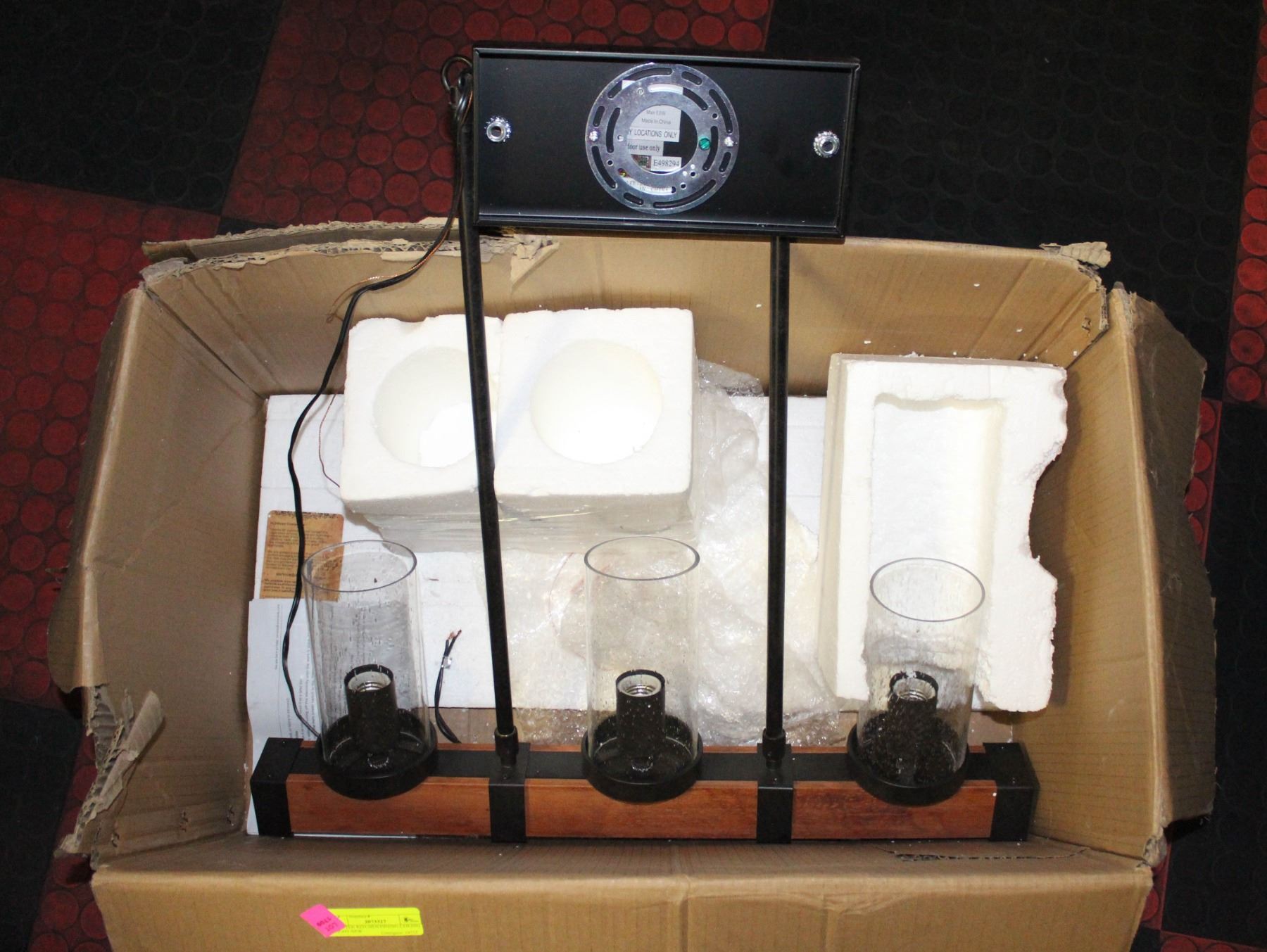IN BOX. 3 GLASS SCONCES. BLACK IRON TRIM **ALL ITEMS MUST BE REMOVED BY 5PM SATURDAY, JULY 12TH 2025. ALL REMAINING ITEMS WILL BE SUBJECT TO A $6.00 PER DAY STORAGE CHARGE. ANY ITEMS REMAINING AFTER MONDAY, JULY 28TH 2025 WILL BE CONSIDERED FORFEITED. NO REFUNDS WILL BE ISSUED FOR FORFEITED ITEMS. TO SCHEDULE A PICK UP APPOINTMENT CLICK HERE