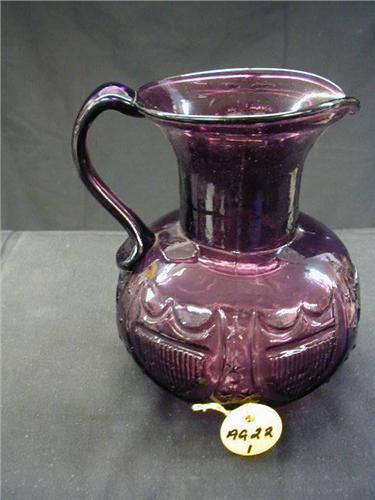 AMYTHEST 4 MOLD LIBERTY SHIELD & STAR 5 1/2in PITCHER HND. BLWN. EXCELLENT