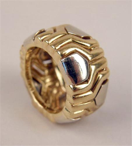 <b>AN 18K WHITE GOLD AND YELLOW GOLD SCULPTURAL BAND-FORM RING</b>