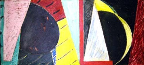 AN ABSTRACT CRAYON ON BOARD; unsigned. 24" x 51"