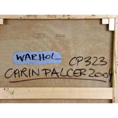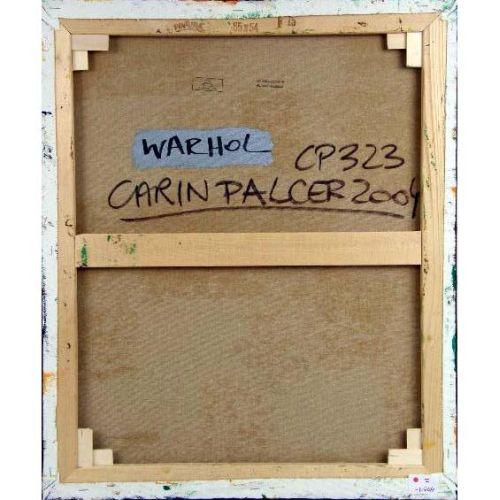 AN ABSTRACT OIL ON CANVAS<BR><BR>Titled "Warhol" bears signature on verso, "Carin Palcer," dated 2004. 25 1/2"h x 21 1/4"w