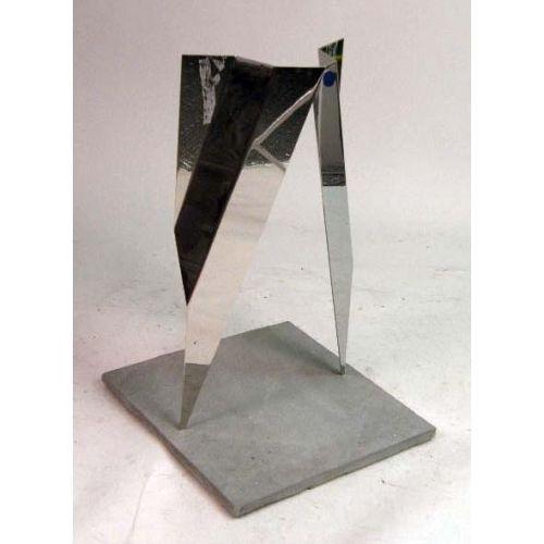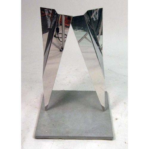 AN ABSTRACT POLISHED MIRRORED STAINLESS STEEL SCULPTURE<BR><BR>Titled "Passage," by Anthony Krauss, 28-1/2"h x 16"w x 15"d
