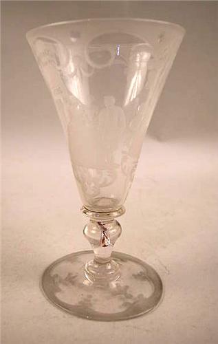 AN ACID ETCHED WHEEL-CUT COLORLESS GLASS STEMMED WEDDING GLASS;