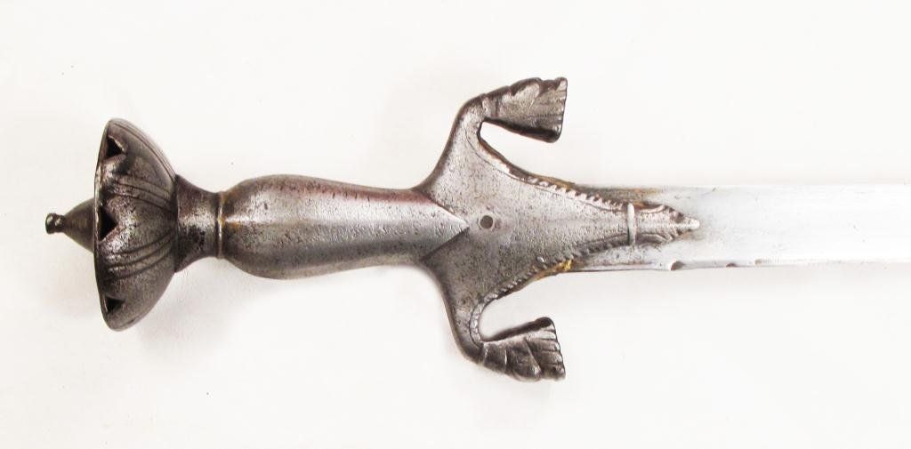 The steel hilt of characteristic form, with profiled pommel and quillon finials.The handforged blade curved and single-edged.Late 18th-early 19th century. Light wear. Overall length 78.2 cm. Condition III