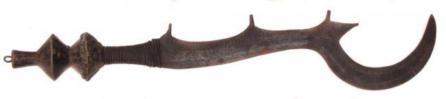 Ngala People, with carved wooden grip and fine iron blade.Early 20th century.Worn.Overall length 67.5 cm.