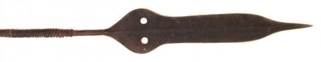 Congolese, with forged head and bell finial.Wooden haft.Early 20th century. Light wear. Overall length 156 cm.