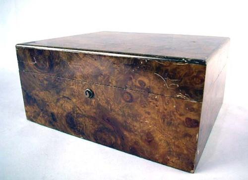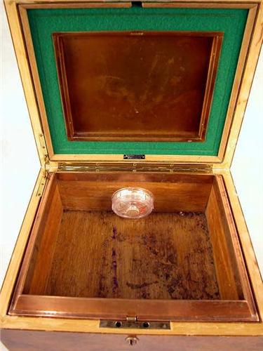 AN ALFRED DUNHILL BURL WOOD HUMIDOR WITH COPPER LINING Patent #2052826, 12" x 10" x 6
