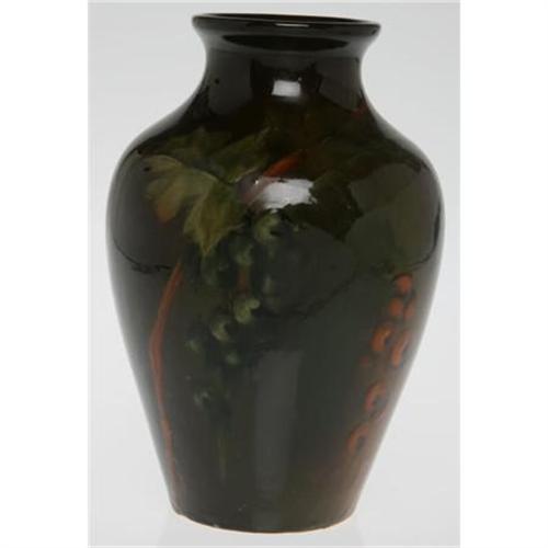<B>AN AMERICAN ART POTTERY VASE</B></I><BR>Weller Pottery, circa 1895-1918<BR><BR>'Louwelsa' pattern, painted by Hattie Ross, depicting grapes and berries, incised mark to the underside <I>Louwelsa Weller</B></I> and artist signed near the foot <I>H. Ross</B></I><BR>11-3/4in. high<BR><BR> <B>Condition Report:</B> Normal signs of wear as appropriate with age; some crazing.<BR><BR><b>Shipping:</b> Miscellaneous Collectibles, Larg (<a target="_blank" href="http://www.heritageauctions.com/common/shipping.php">view shipping information</a>)