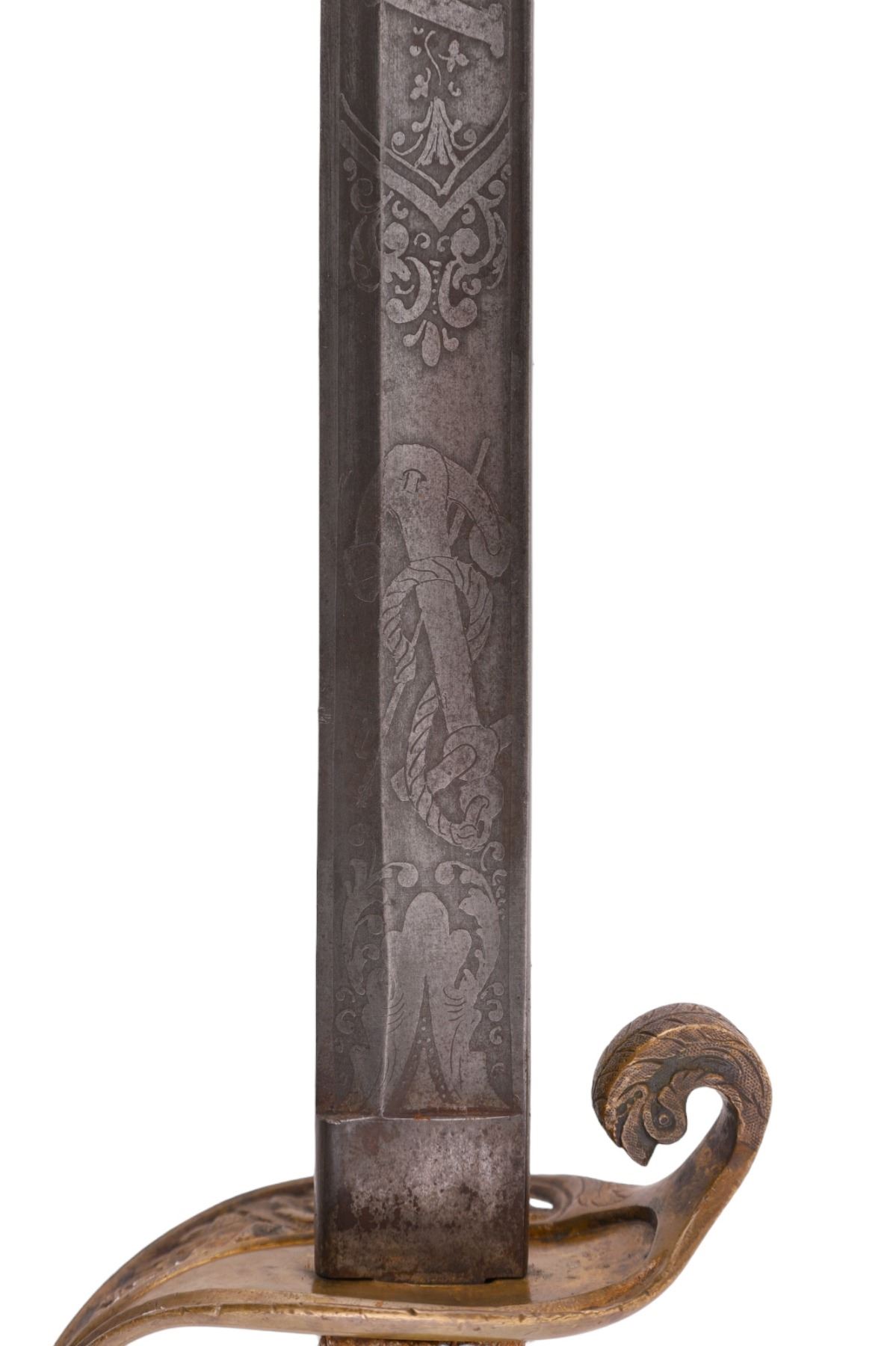 Very good overall, all parts are tight. The blade is in excellent condition, the original gilding is partially lost.