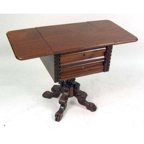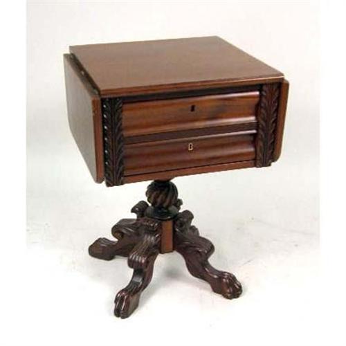 AN AMERICAN EMPIRE STYLE MAHOGANY WORK TABLE<BR><BR>28"h x 18"sq.