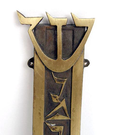 AN AMERICAN PATINATED METAL SYNAGOGUE MEZUZAH CASE
