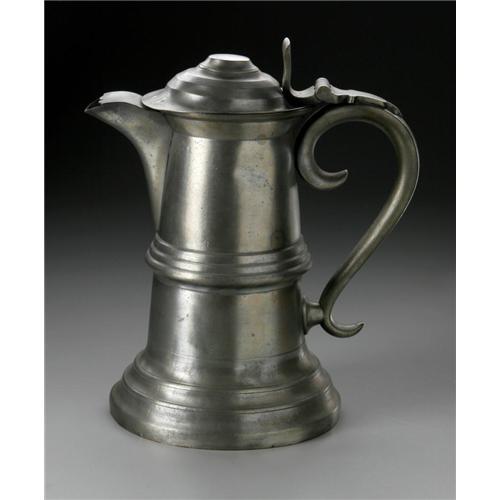 AN AMERICAN PEWTER FLAGON, SHELDON & FELTMAN AN AMERICAN PEWTER FLAGON