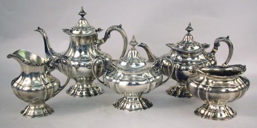 AN AMERICAN STERLING SILVER FIVE PIECE TEA AND COFFEE SERVICE, REED & BARTON