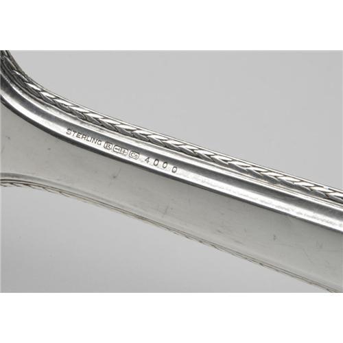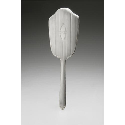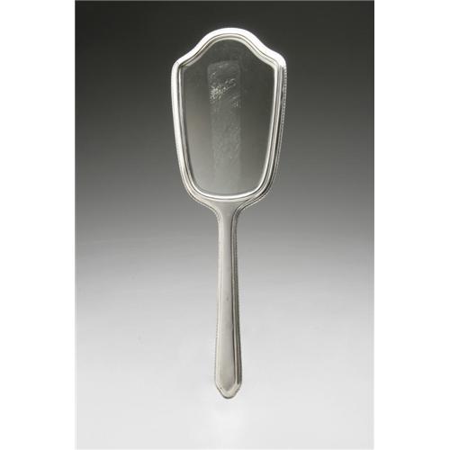 <B>AN AMERICAN SILVER HAND MIRROR</B></I><BR>R. Blackington & Co., North Attleboro, MA, Early Twentieth Century<BR><BR>Block monogram to the reverse <I>F.S.,</B></I> hallmark to the side of the handle with <I>STERLING 4000</B></I><BR>13.3in. long x 4.2in. wide<BR><BR> <B>Condition Report:</B> Normal signs of wear as appropriate with age; silver backing on the glass has a strip of antiquing to the center.<BR><BR><b>Shipping:</b> Hollowware/Pottery/Glass, Small (<a target="_blank" href="http://www.heritageauctions.com/common/shipping.php">view shipping information</a>)