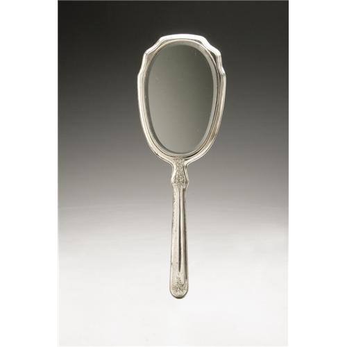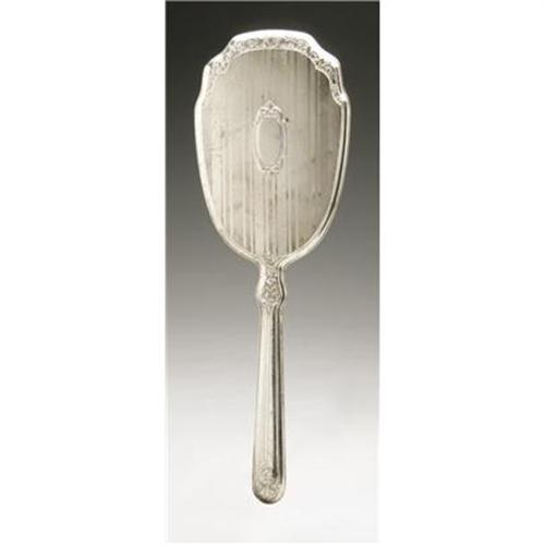 <B>AN AMERICAN SILVER HAND MIRROR</B></I><BR>Maker unknown, Early Twentieth Century<BR><BR>Unidentified hallmark to the top with <I>STERLING</B></I><BR>13in. long x 4.3in. wide<BR><BR> <B>Condition Report:</B> Normal signs of wear as appropriate with age; surface scratches to the handle and reverse.<BR><BR><b>Shipping:</b> Hollowware/Pottery/Glass, Small (<a target="_blank" href="http://www.heritageauctions.com/common/shipping.php">view shipping information</a>)