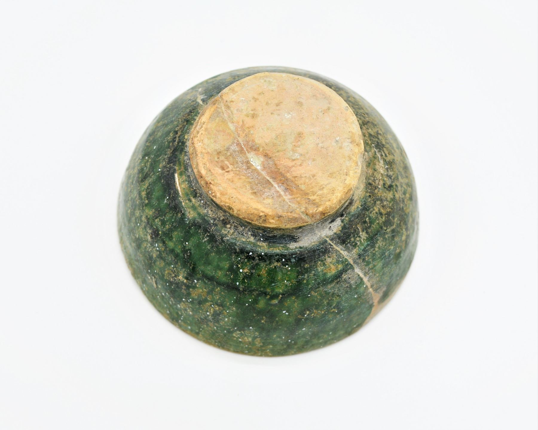AN ANCIENT ISLAMIC GHAZNAVID GREEN GLAZED BOWL, CIRCA 9th-11TH CENTURY.Of rounded form with everted rim on