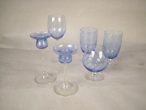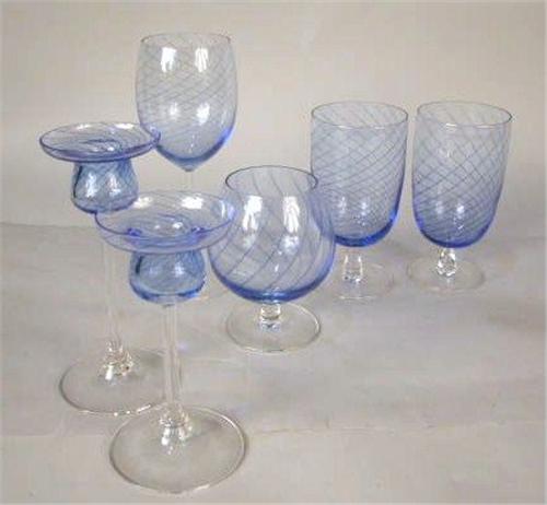 Comprising, five wine goblets, eight brandy snifters, and seven water goblets, bears signature Smyer, 1981. Together with five candlesticks, and four ruby-to-clear wine glasses signed "Kusch(?). 29 pieces
