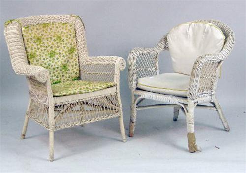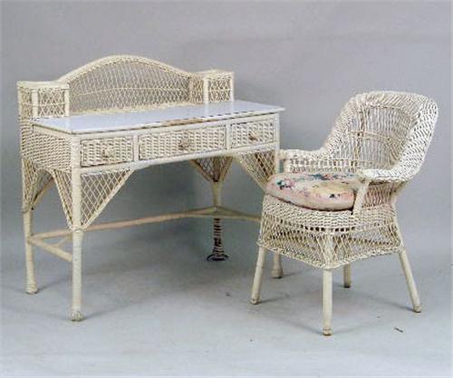 <b>AN ASSEMBLED GROUP OF IVORY-PAINTED WICKER GIRL`S BEDROOM FURNITURE</b>