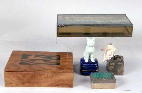 Including, wood, white metal, ceramic and stained glass, 5 pieces