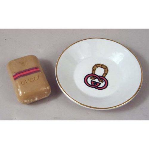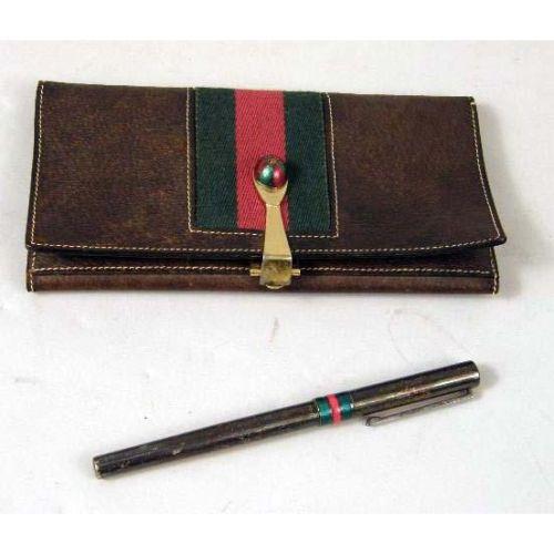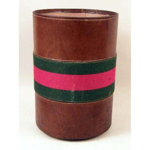 AN ASSORTED GROUP OF GUCCI ARTICLES<BR><BR>Including, ribbon, a wallet, a waste basket, an ashtray, and a pen, approximately 10 pieces