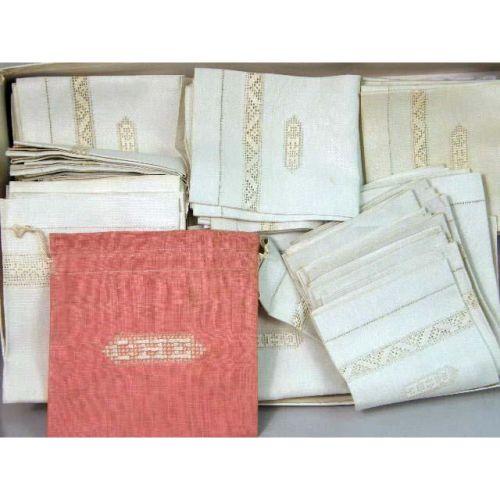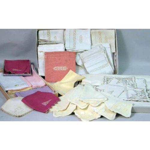 AN ASSORTED GROUP OF LINENS<BR><BR>Including, table clothes, napkins, and handtowels