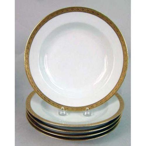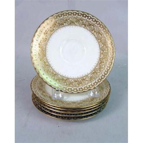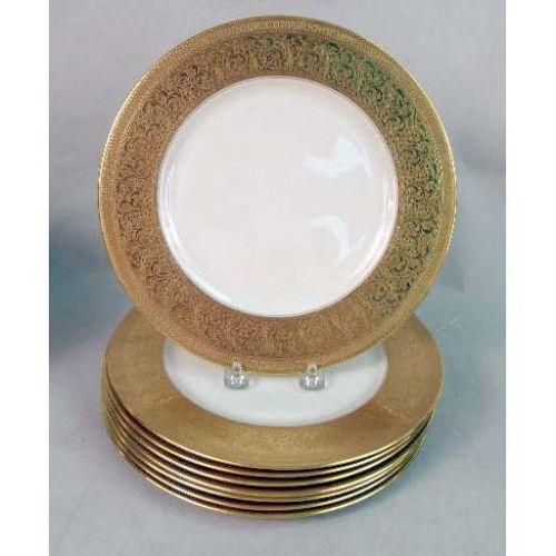 AN ASSORTED GROUP OF PARCEL-GILT DECORATED PORCELAIN DINNERWARE ARTICLES<BR><BR>Comprising, eight Lenox service plates, five Limoges rim soup bowls, three Limoges lunch plates, and six Royal Dalton saucers, Approximately 22 pieces