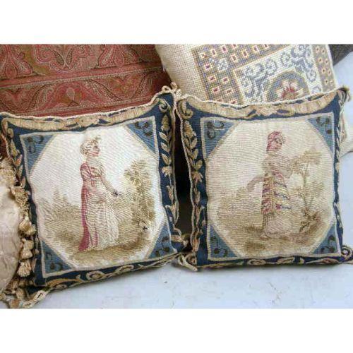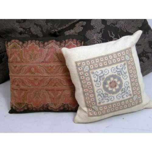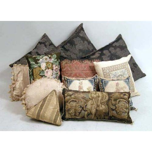AN ASSORTED GROUP OF PILLOWS<BR><BR>Including, needlepoint and silk, losses, from 12"h x 10"w to 20"h x 20"w. Approximately 12 pieces