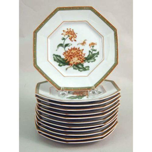 AN ASSORTED GROUP OF PLATES<BR><BR>Including, six Bavarian lunch plates, seven Syracuse China lunch plates, twelve Fitz and Floyd octagonal bread and butters, and twelve Royal Limoges bread and butters